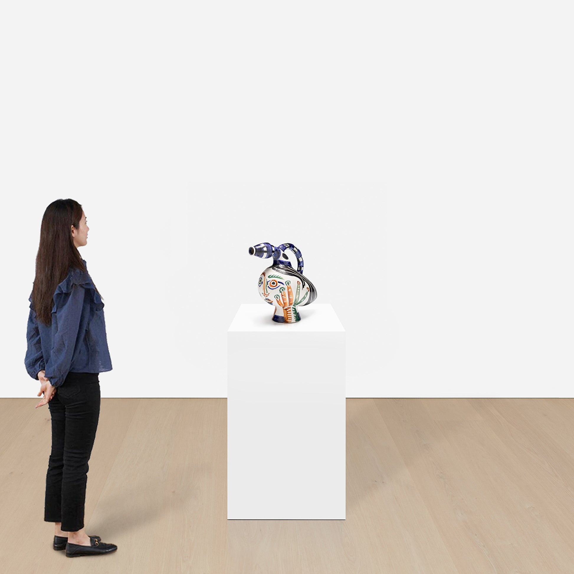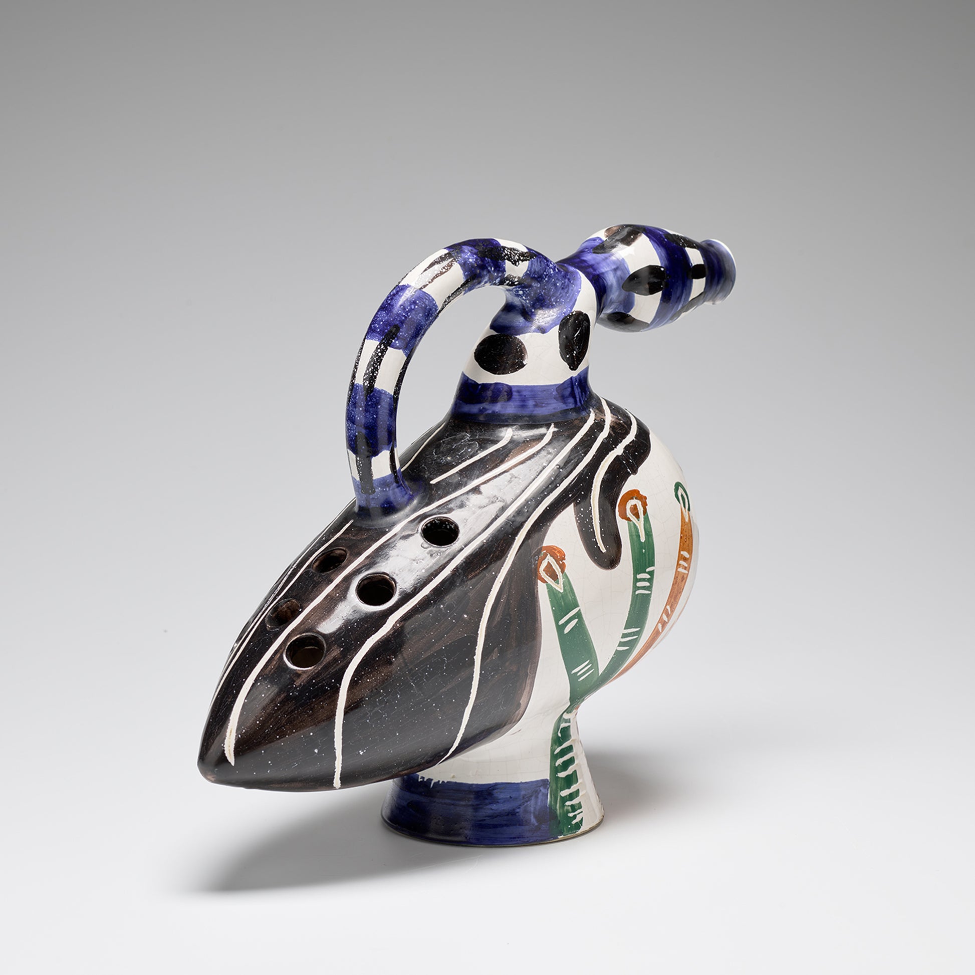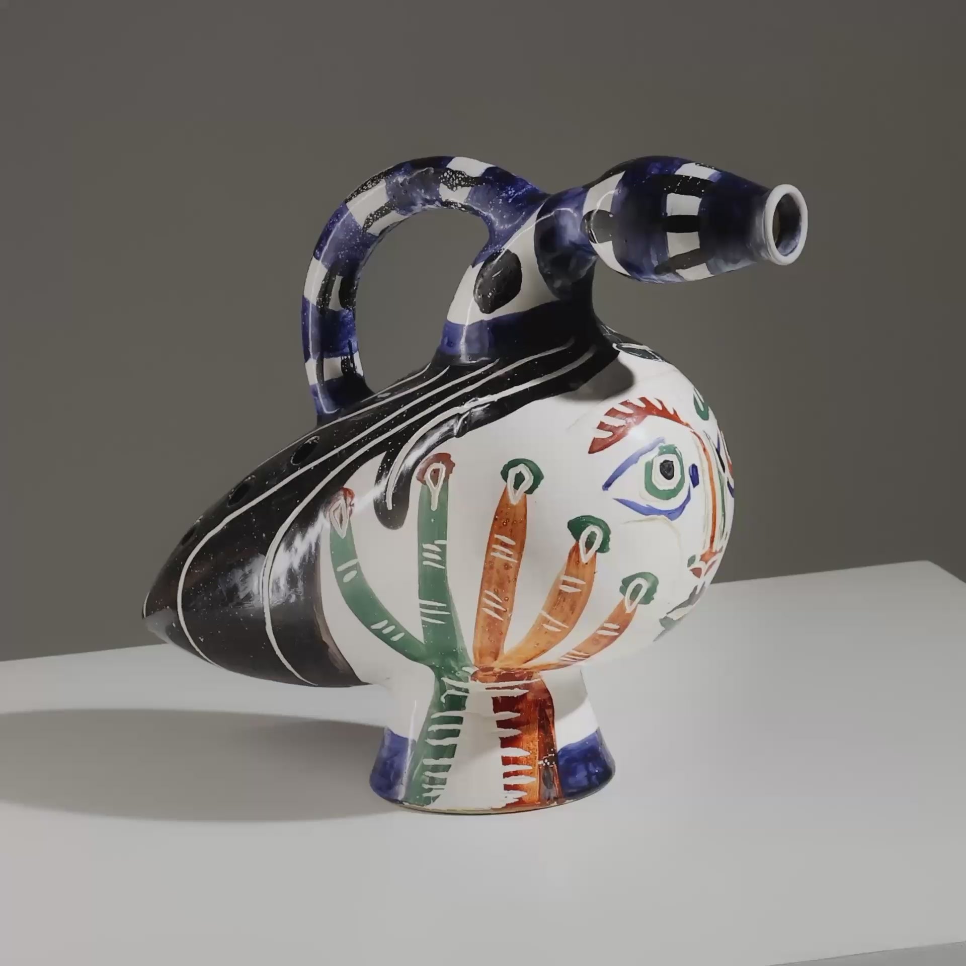 This works exemplifies Picasso’s ability to animate his ceramic surfaces with the same dynamism found in his use of pencil and oil, the vase captures the soulful duck through expressive yet minimal of line.