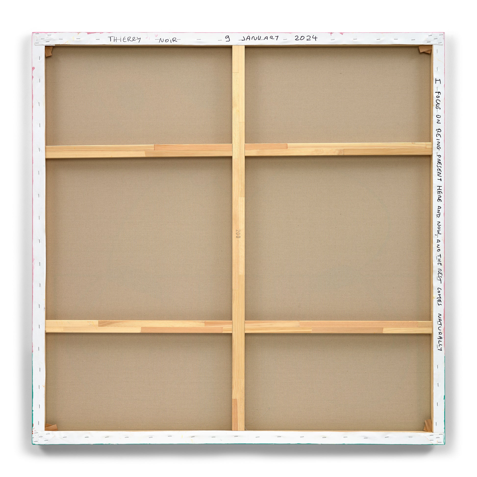 signed 'NOIR' lower right; signed, titled, and dated 'THIERRY NOIR 9 January 2025 "I focus on being present here and now, and the rest comes naturally"' on the overlap
