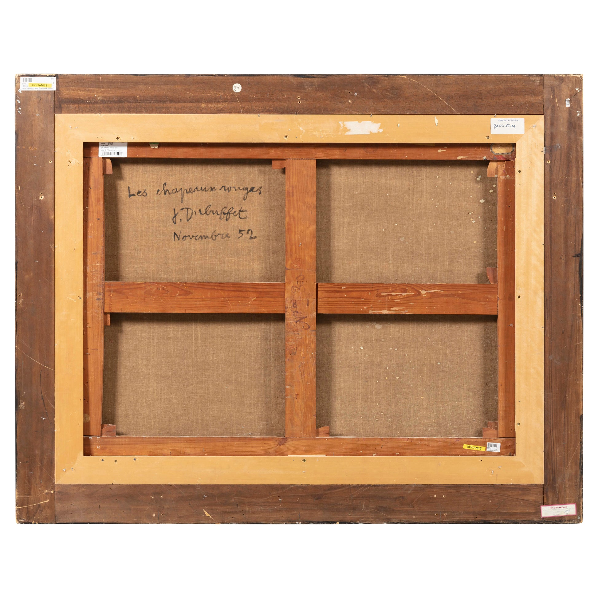 signed and dated ‘J. Dubuffet 52’ upper left; signed, titled and dated ‘Les chapeaux rouges J. Dubuffet Novembre 1952’ on the reverse