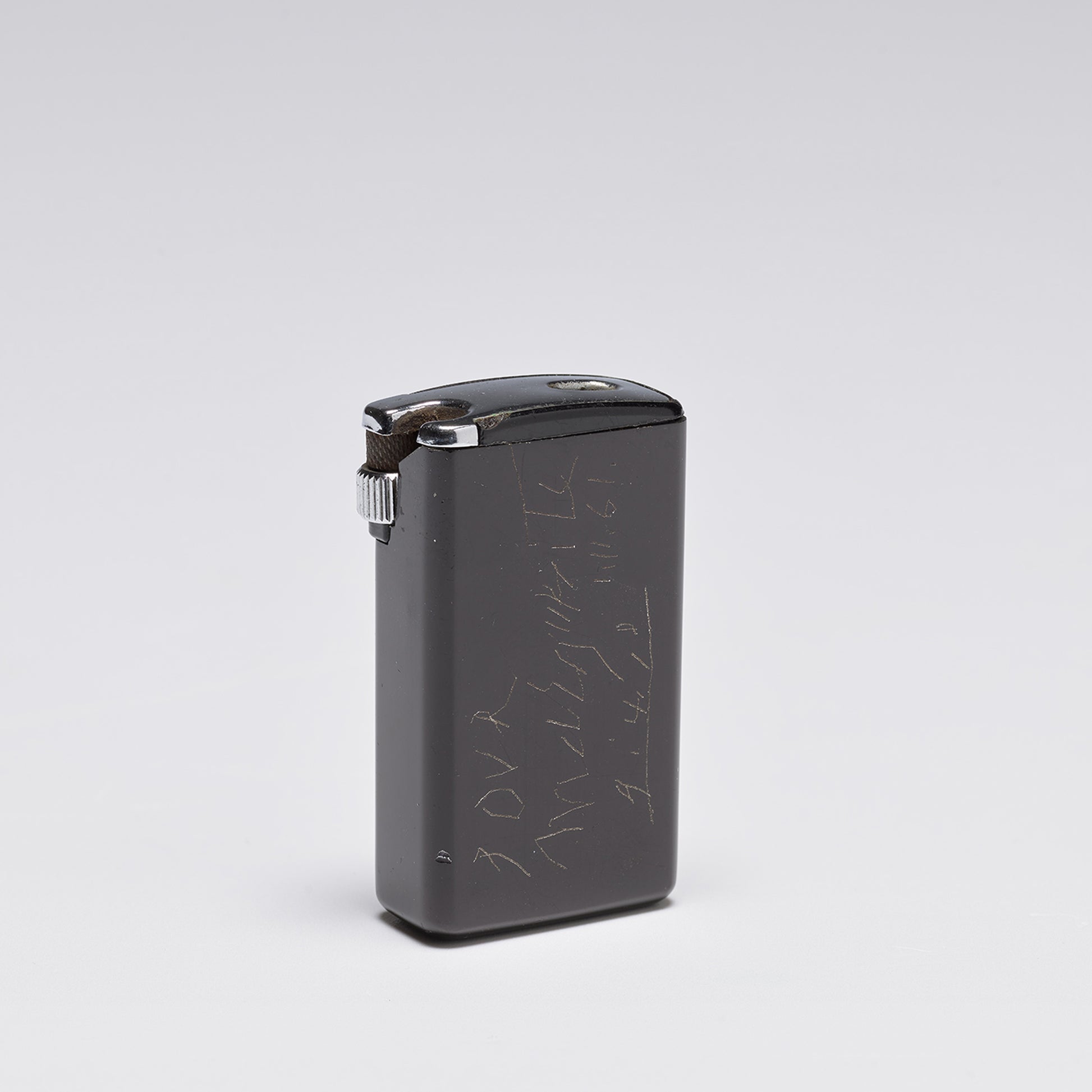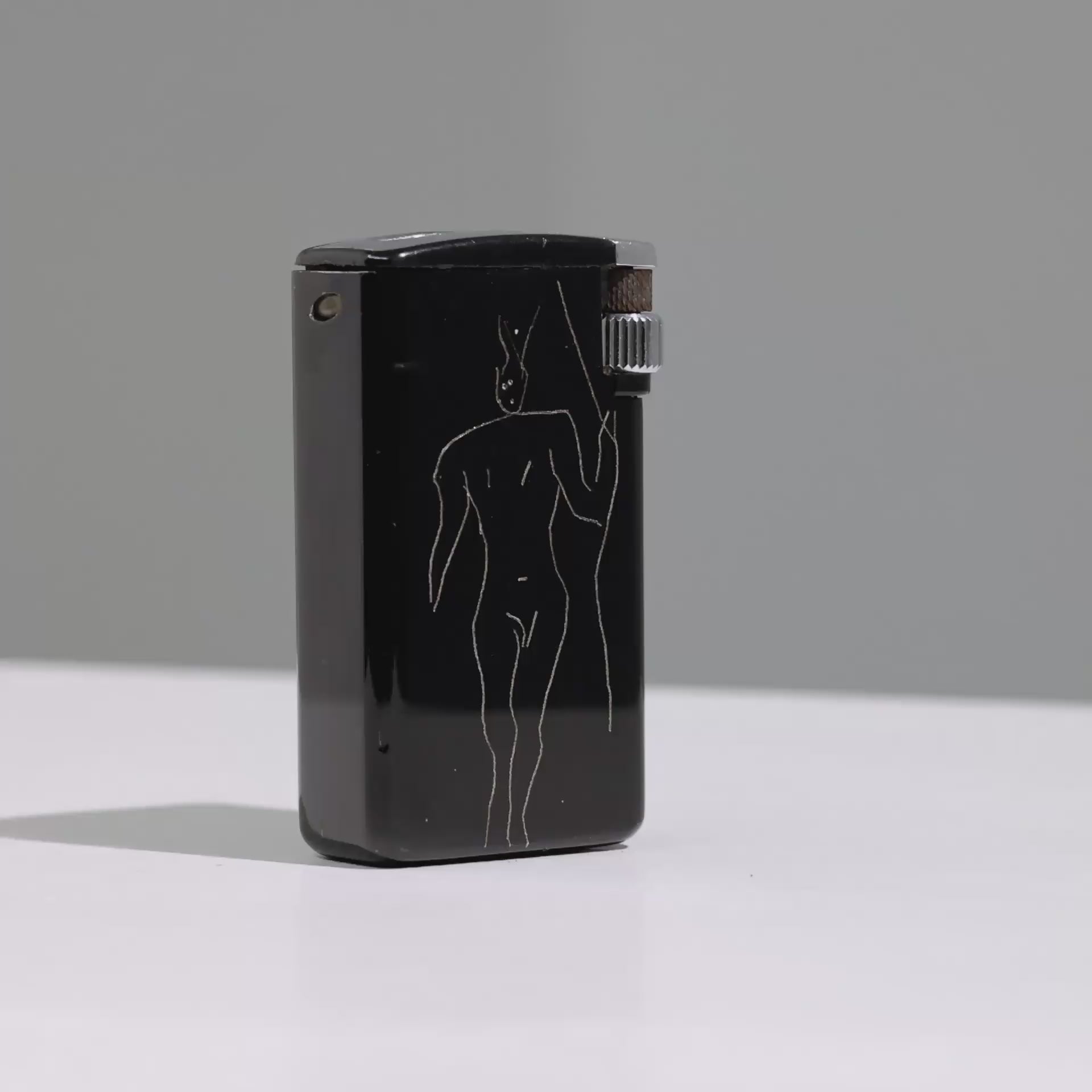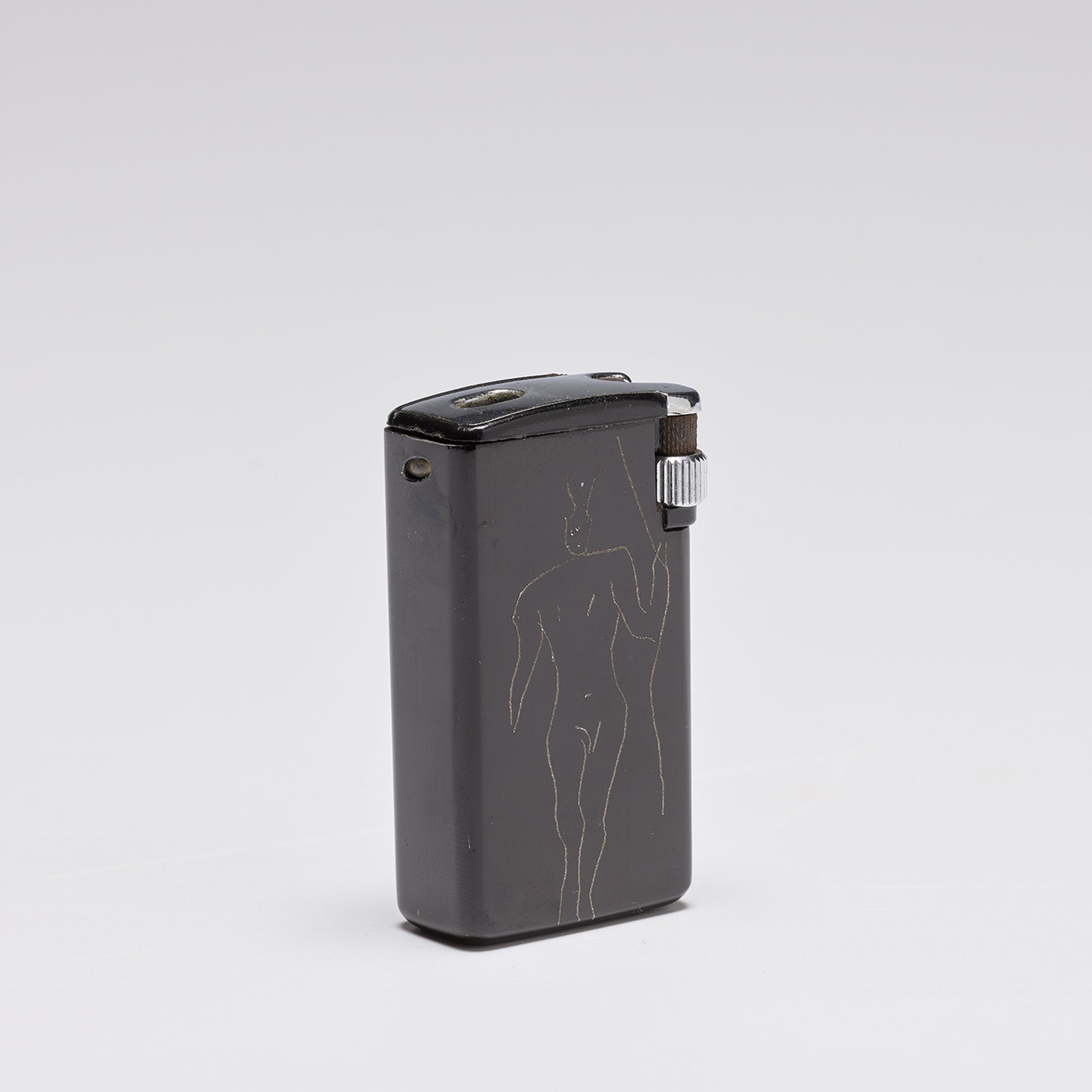 incised, dedicated and dated ‘POUR MARGUERITE Picasso le 1.11.61’ on the underside engraving on Flaminaire lighter in black lacquer