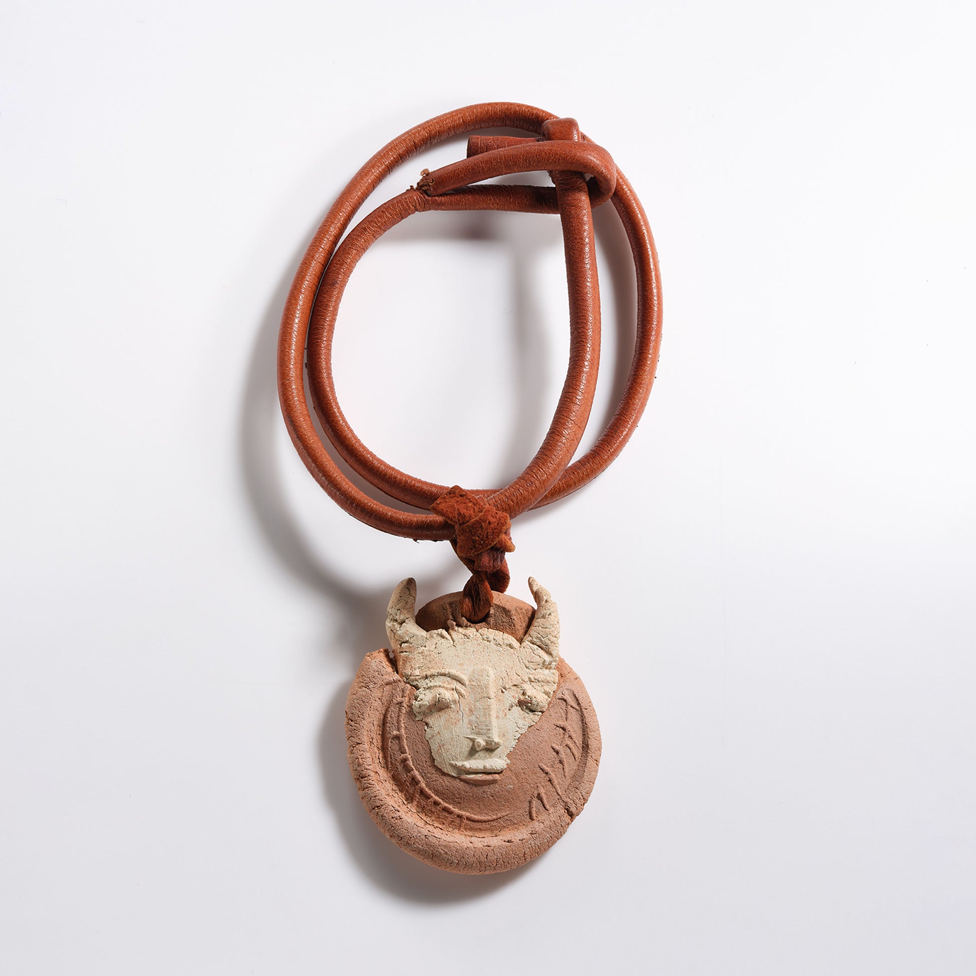 terracotta medallion painted in colours